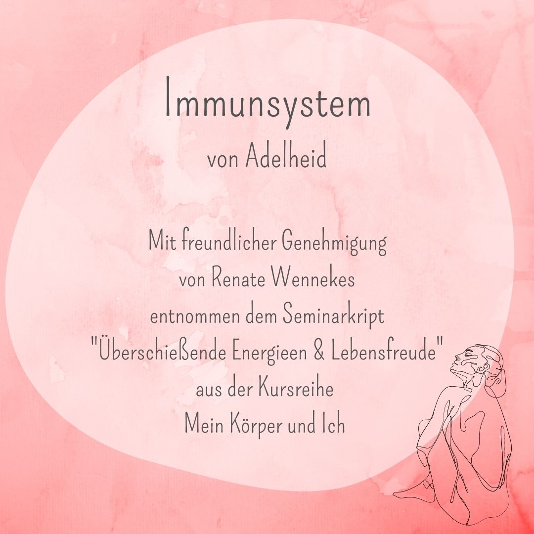 Manchmal findet man alte Texte wieder, die wie kleine Geschenke wirken. So ist es mir mit „Mein Immunsystem von Adelheid“ ergangen – einem Text, den ich gestaltet habe, als ich den Kurs "lebensfreude & Überschießende Energien" aus der Kursreihe "Mein Körper und ich" von Renate Wennekes unterrichtet habe. Er ist, für diejenigen, die mit der Kinesiologie vertraut sind, ein Teil des "Lernmenüs". Und wie es oft mit alten Hüten ist: Manche passen einfach immer wieder.